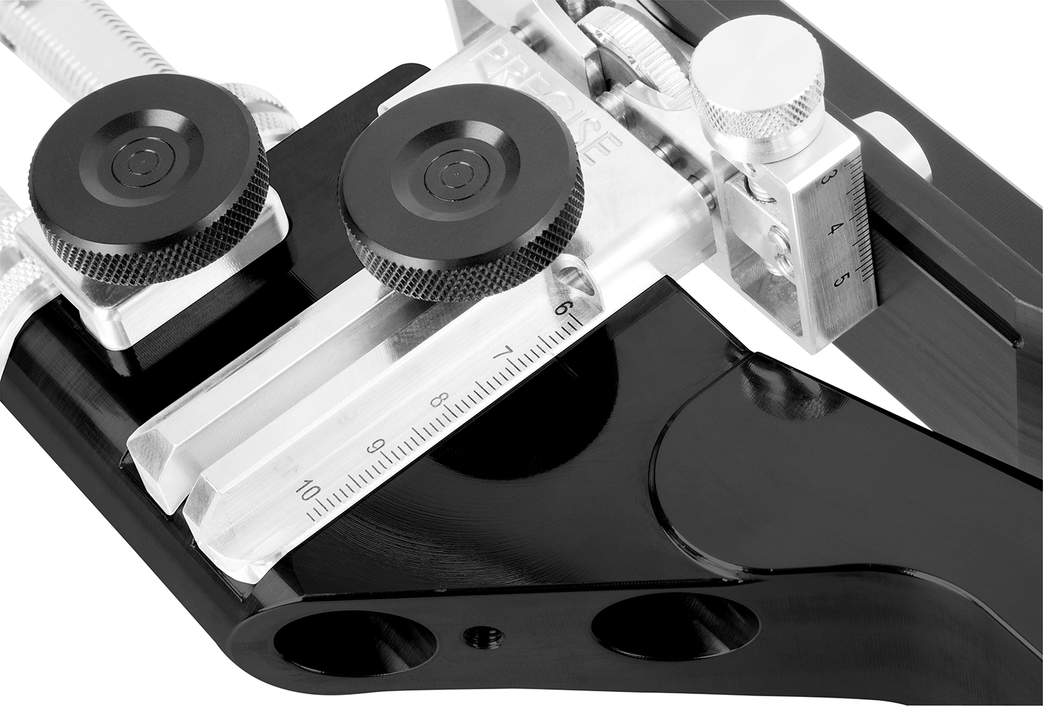 - fortlaufende, millimetergenaue Skalierung an der Backenseitenverstellung