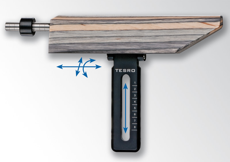 Bei der Entwicklung des RS 100 Pro wurde auf die Verwendung von Kunstoffteilen weitestgehend verzichtet. Der Schaft und alle anderen metallischen Anbauteile werden bei Tesro aus einer hochwerigen Aluminiumlegierung gefräst. Der Lauf ist mit einem speziellen Lauflagersystem ausgestattet was die Schwingungen bei der Schussabgabe eliminiert. Der Druckminderer ist wie bei der bewährten Luftpistole PA10 in Integralbauweise gefertigt was die Schussentwicklungszeit auf ein Minimum reduziert.Der Diopter, die Schaftkappe, sowie die Laufverlängerung sind sind Eigenentwichlungen aus dem Hause Tesro. Natürlich ist auch das Pro Modell mit einer T-Nutschiene ausgestattet was die Anbringung z.B. eines Handstopps oder anderer Anbauteile ermöglicht.