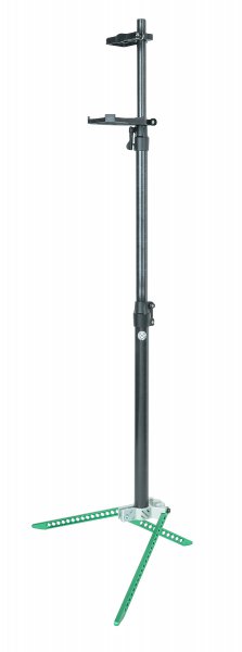 Das Stativ kann bis zu einer Höhe von 190 cm ausgefahren und stufenlos positioniert werden und ist nach Zusammenschieben der Rohre im Handumdrehen für das Kniendanschlag bereit.