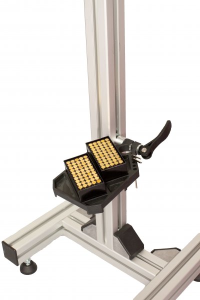Das ahg Auflagestativ Solid kann mit seiner ausgeklügelten Fußgeometrie, sowie 4 individuell einstellbaren Stellfüßen optimal an jeden Schießstand angepasst werden, egal ob Seilzuganlagen oder elektronische Anlagen. Robuste Aluminiumteile und 4 Winkelverstrebungen garantieren hohe Stabilität und eine ruhige Waffenlage. Die runde Kunststoffauflage wird durch Drehen gelöst und lässt sich zur optimalen Höheneinstellung stufenlos verstellen. Zum Lieferumfang gehört auch eine höhenverstellbare Munitionsablage, die Diabolo-Dosen, Schüttelboxen und KK-Munition einen sicheren Stand bietet.