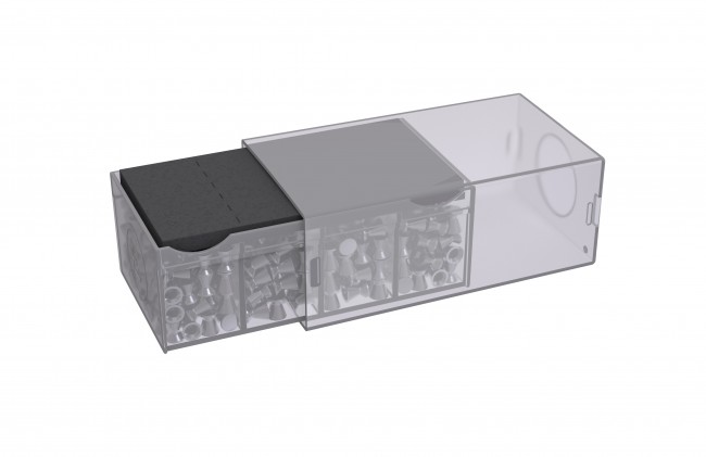 Die Box ist in 4 Fächer unterteilt und mit Schaumstoffkissen überzogen welche die Bewegung der Diabolos beim Transport extrem minimiert.